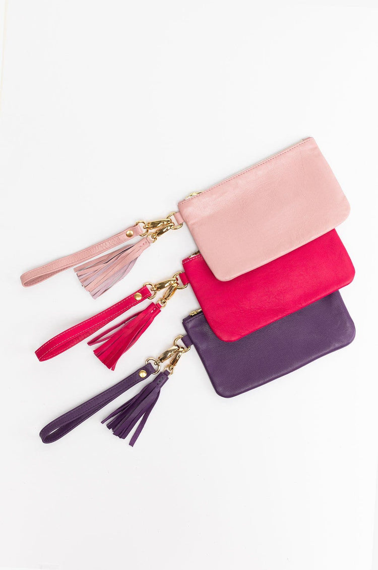 The Wristlet Pouch is the perfect size to accommodate your daily essentials: phone, keys, ID. Use it on its own or to organize your life in a larger bag. We sourced gold plated hardware for the tassels and wrist straps; Both are removable. This item was designed with versatility in mind and makes for an easy gift for o