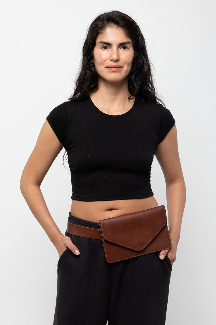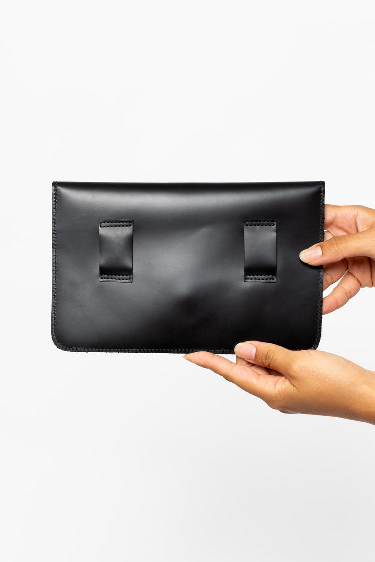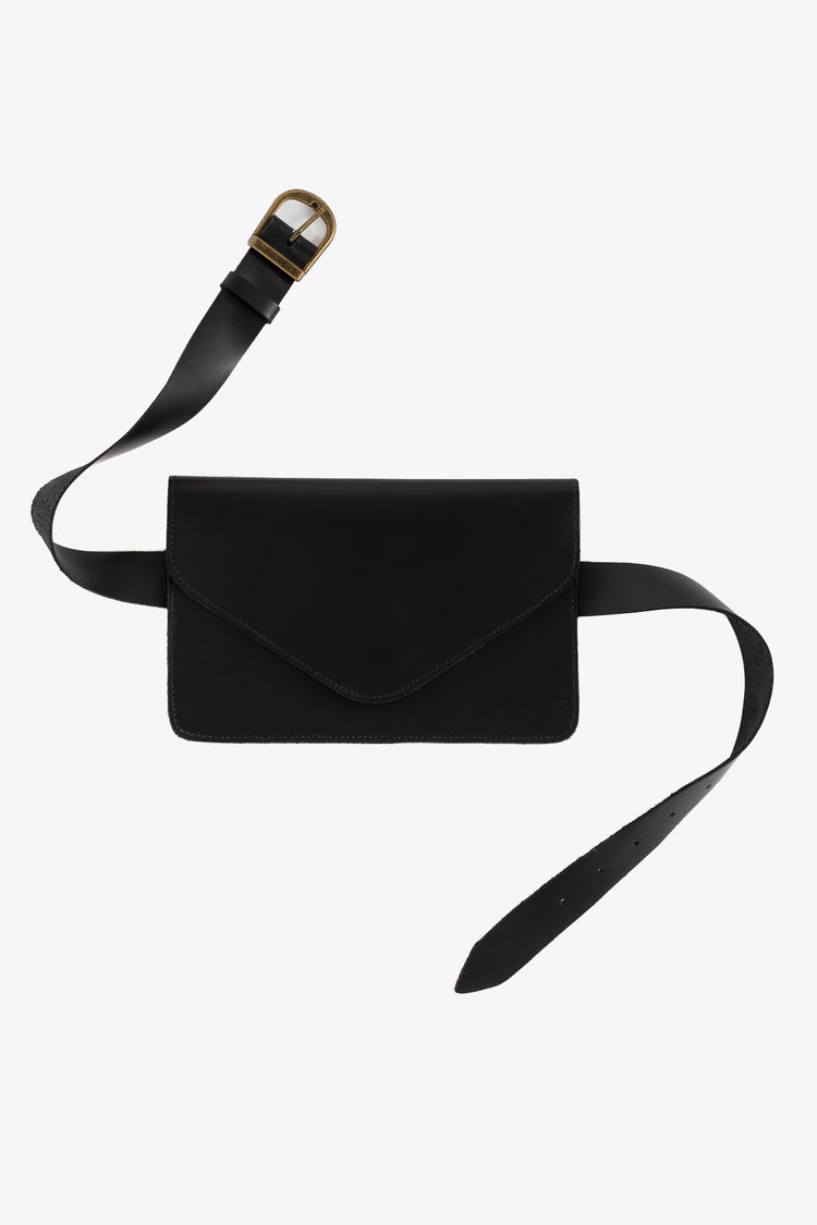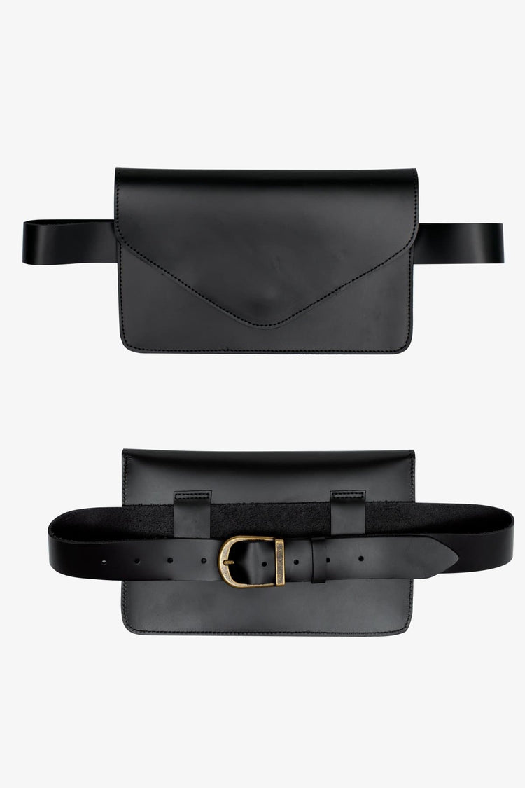 This item is made of heavy cowhide for a stiff finish and is large enough for the essentials: phone, keys, and cards. The removable belt makes it possible to use this item as a classic evening clutch or belted around the waist. You can also wear the belt on its own! This practical style is perfect for travel when space