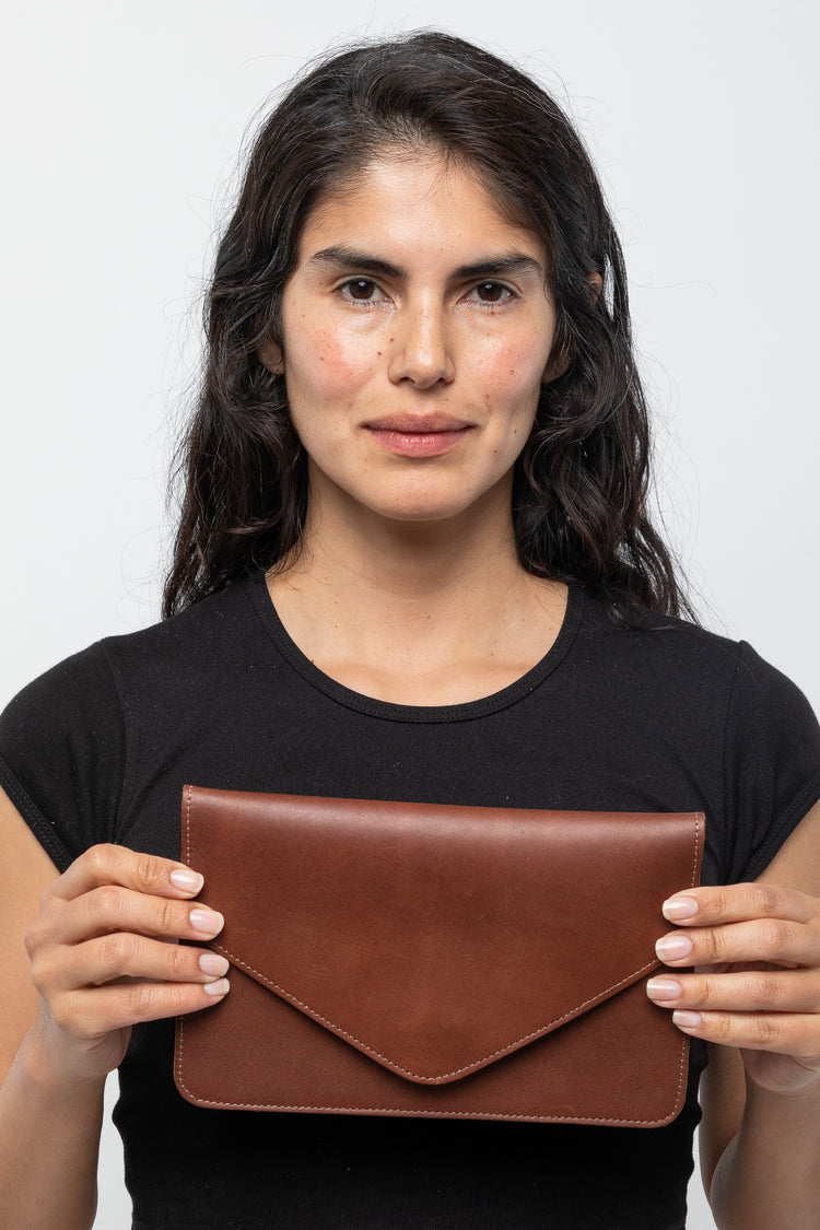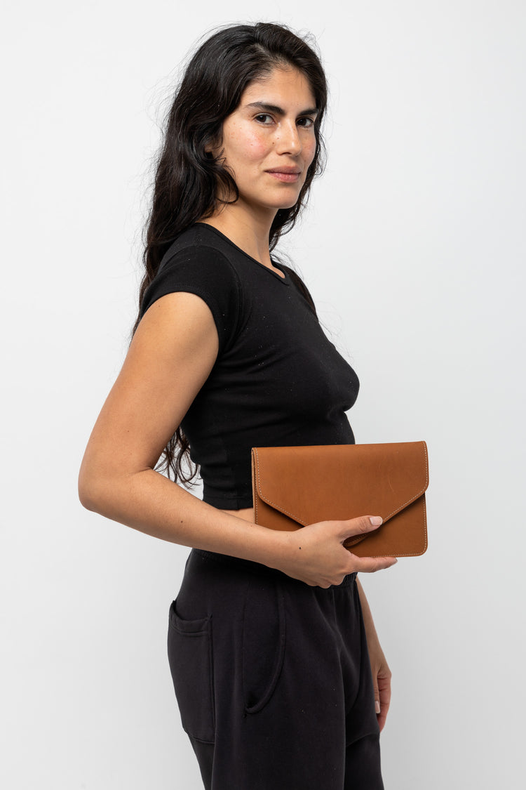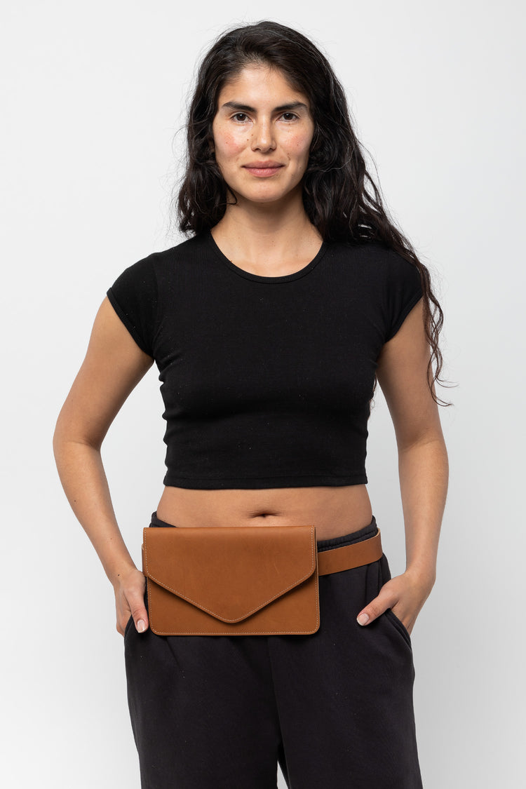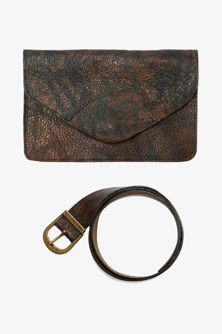 This item is made of heavy cowhide for a stiff finish and is large enough for the essentials: phone, keys, and cards. The removable belt makes it possible to use this item as a classic evening clutch or belted around the waist. You can also wear the belt on its own! This practical style is perfect for travel when space