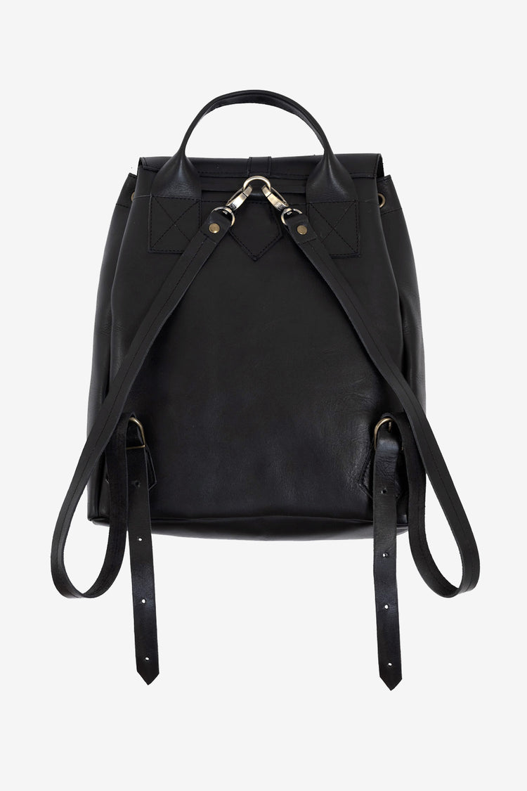 The Unisex Leather Knapsack is a rugged analogue inspired bag made of a stiffer, medium bodied cowhide. The shoulder straps are adjustable and removable with brass clips. A leather drawstring keeps the top of the bag securely closed, beneath the top flap. Brass buckles can be used to secure the front flaps, including o