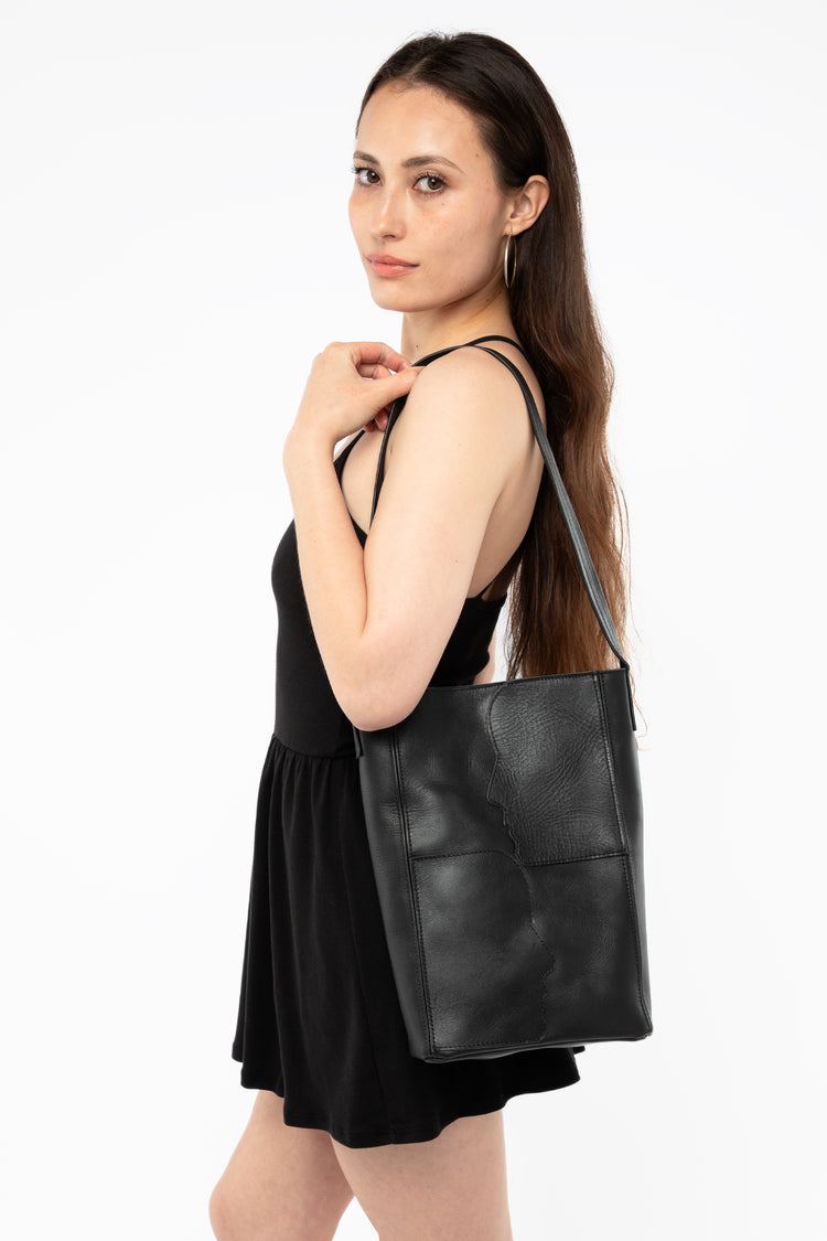 Not too big. Not too small. This unique Goldilocks sized bag was designed to let you carry just the right amount. It neatly fits your tablet, water bottle, and other essentials. The open top allows for quick accessibility; the magnetic closure and depth keep the contents safe inside. The front panel features two opposi