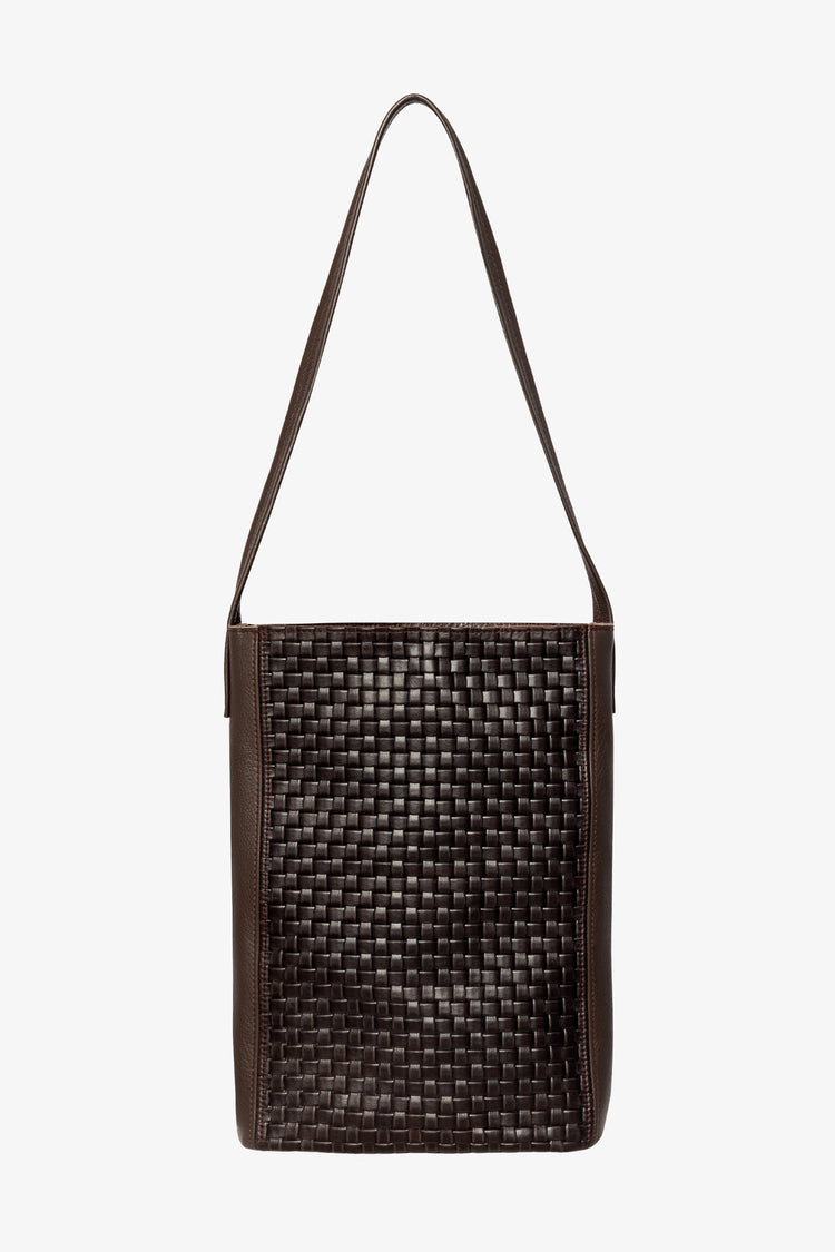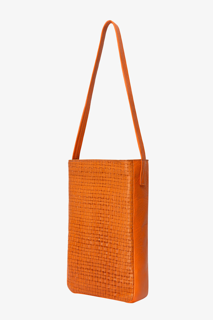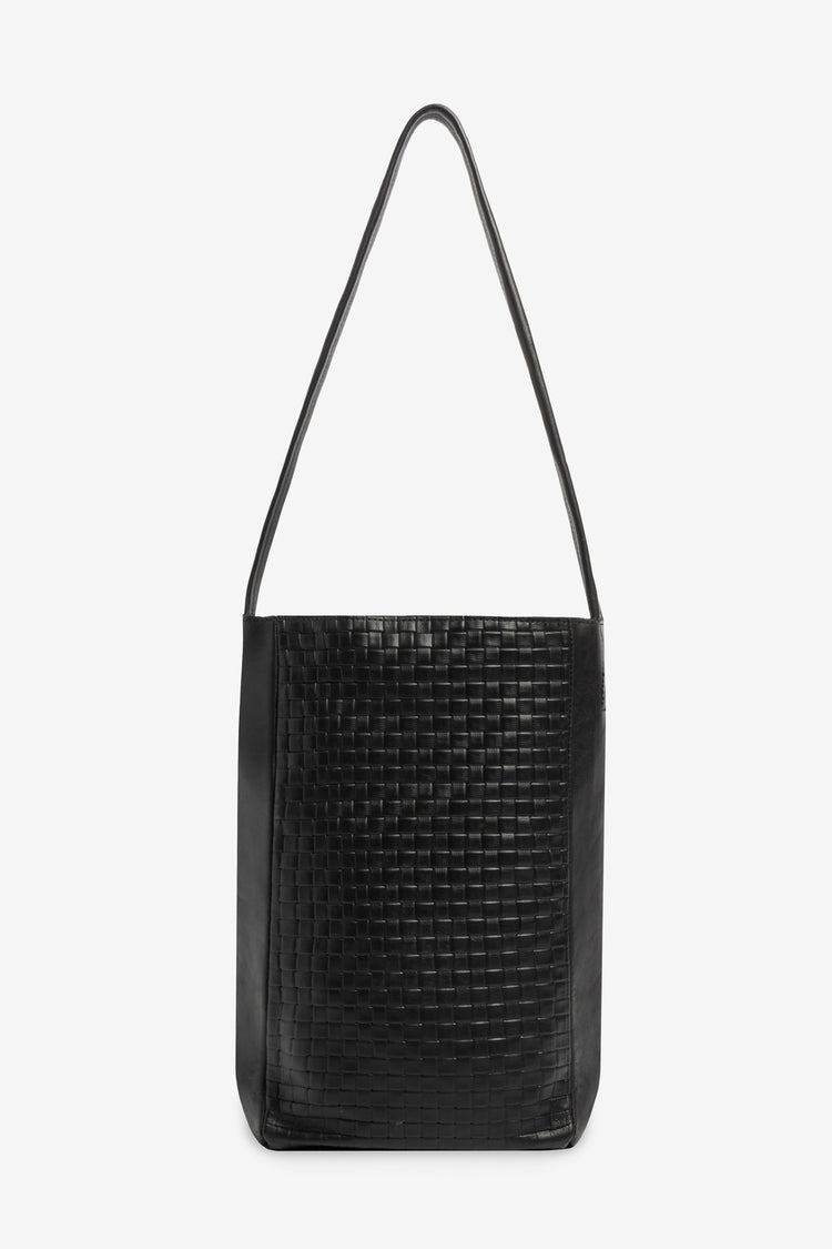 The Woven Slim Tote features a classic woven embossed pattern and easily fits your tablet, water bottle, and other essentials. This artisanal product is made of genuine leather. All scars are characteristics of the skin and not imperfections. We hope you enjoy this unique handmade object. • Lined • Made in Los Angeles,