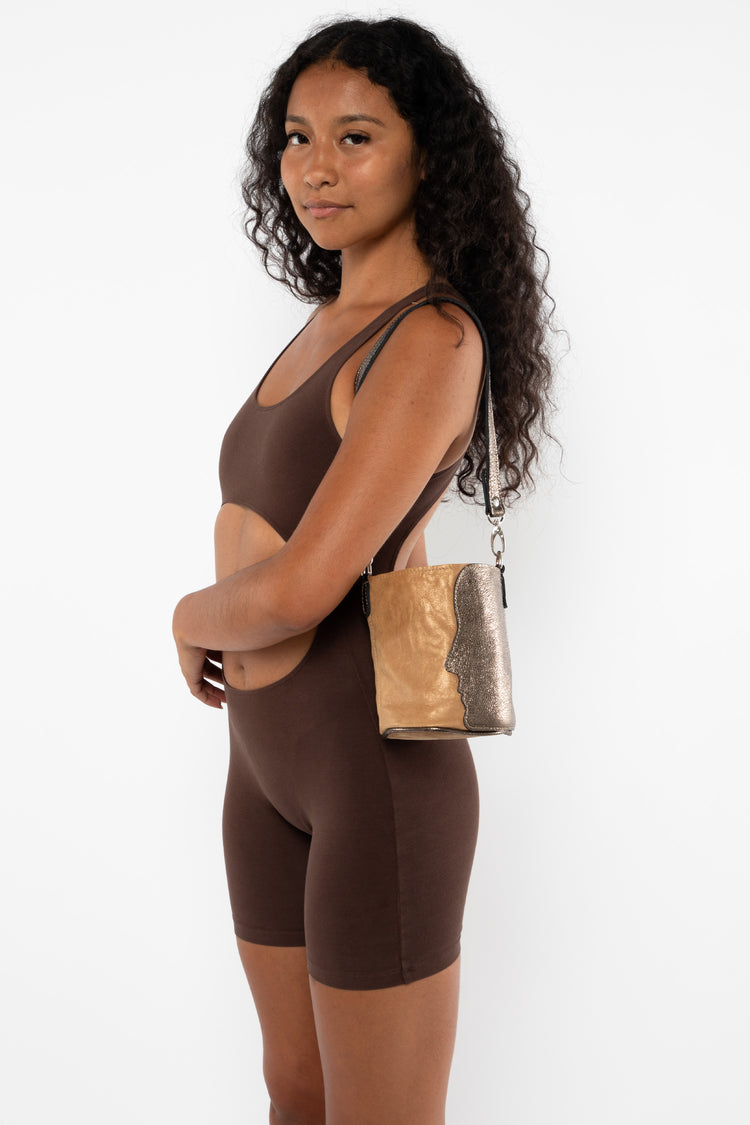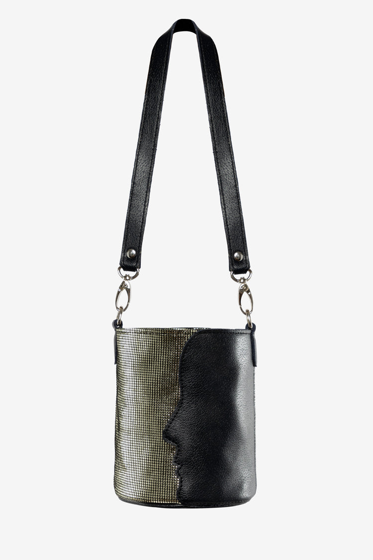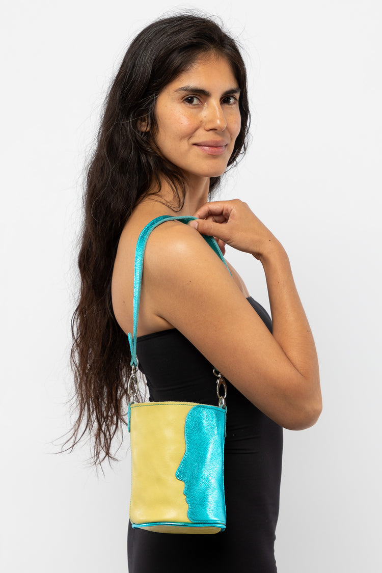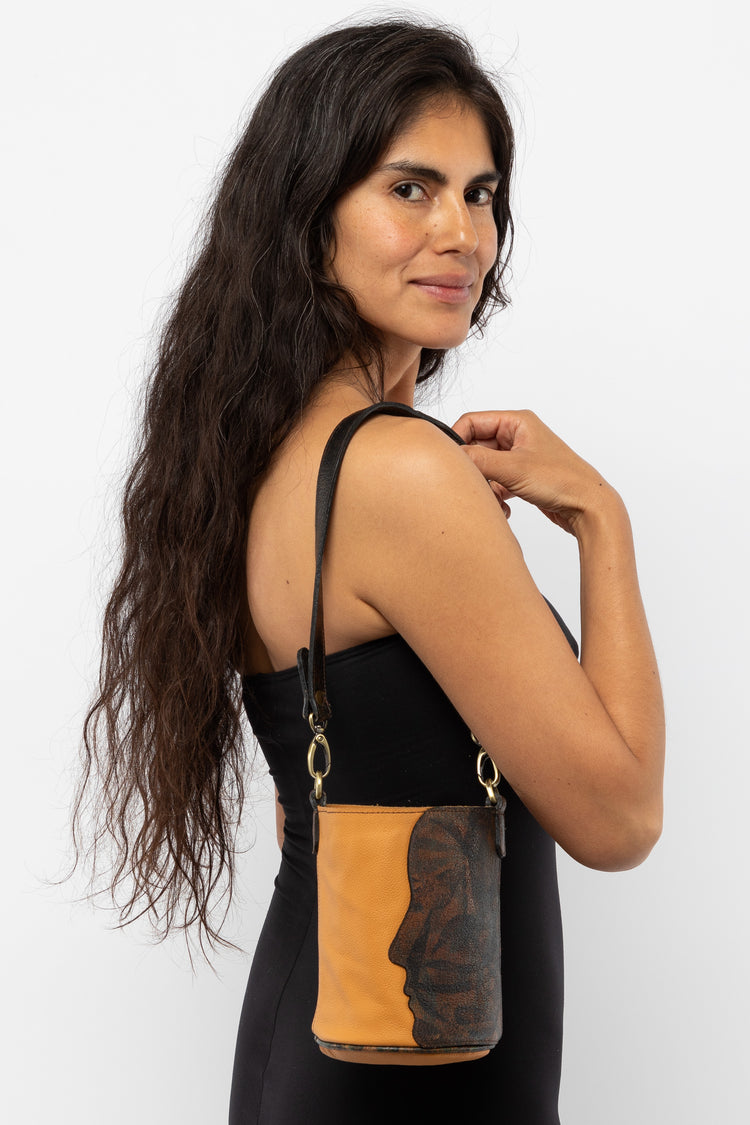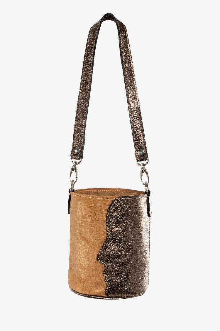 Add a burst of unexpected color with a classic bucket tote as a shoulder bag. The removable shoulder strap can be used on other bags and the interior is lined with cotton twill. The cowhide exterior features a mysterious silhouette sewn on the front panel.This artisanal product is made of genuine leather. All scars are