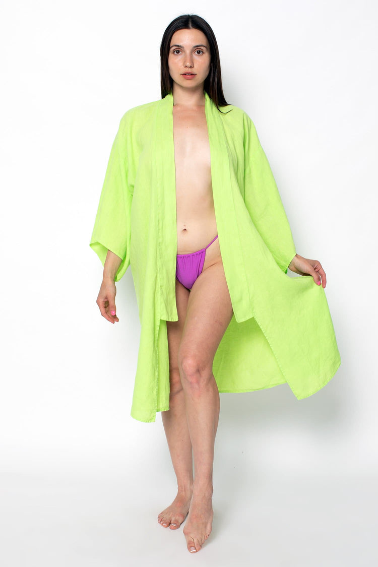 Easy and lightweight Kimono Robe!Perfect for days at the beachwear it over your favorite swimsuit from our line, for relaxing or workdays at home, or to have fun with your friends! Made in Los Angeles, Calif. Our experienced sewers earn up to $25 an hour and no less than $17.87; additionally workers have healthcare ben