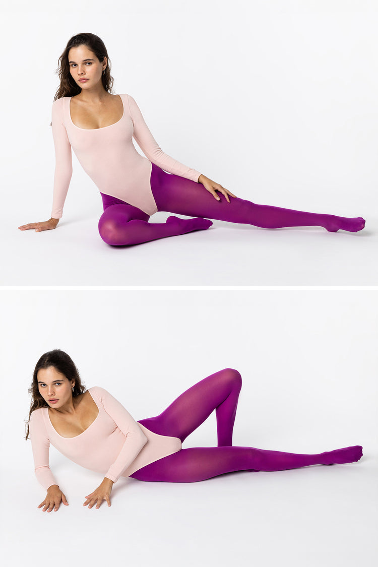 These nylon tights feature a smooth, semi-matte appearance and a lot of stretch to accommodate many sizes and leave you comfortable all day long. These opaque tights have a seamless appearance for everyday ease while layering and feature a reinforced gusset and high waist fit. Handle with care. * All Sales Final. No Re