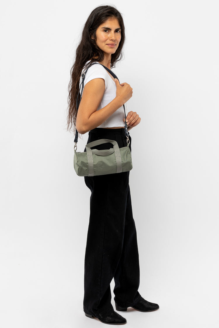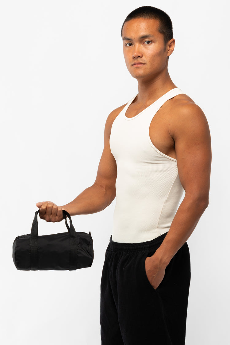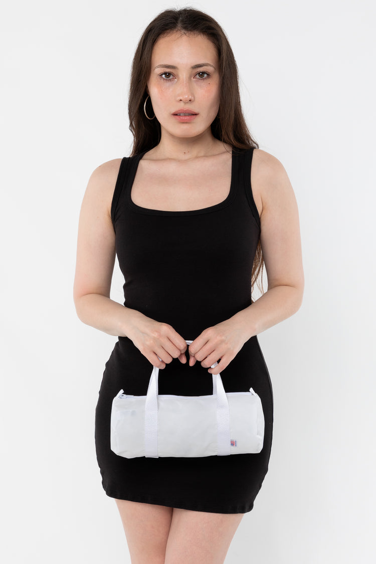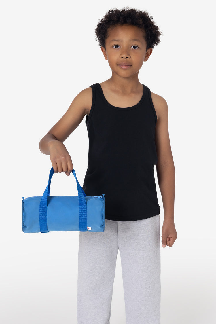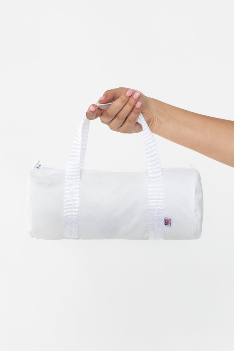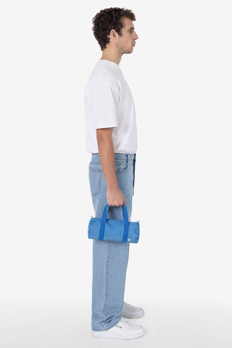 The Unisex Mini Gym Bag is made of a heavy nylon canvas with a water resistant interior coating. The side loops provide the option to add on a shoulder strap, charms, or keys. This easy style is a great way to get organized for all ages and situations. Pack it flat in your suitcase, use it for toiletries, or turn it in