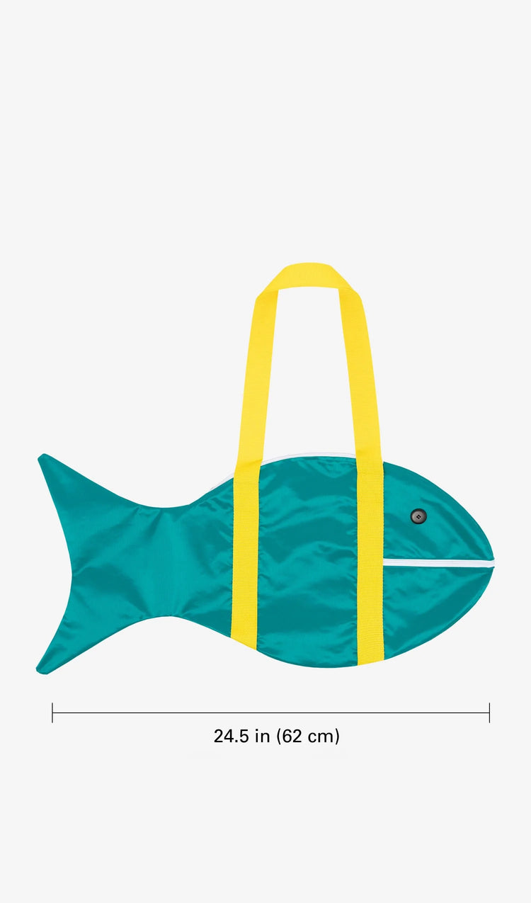The goldfish is a freshwater fish native to East Asia.We have developed this goldfish bag of water-resistant and easy to clean nylon. With a traditional sporty feel for the gym, traveling, or use it as your everyday bag. Features button eyes, zipper mouth opening and contrast nylon straps. • 13 x 24.5"• Nylon cloth pac