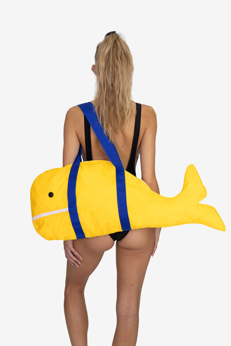 Take one of the biggest, most wonderful animals from the sea with you! Whales love staying where there is warmer water.With a traditional sporty feeling for the gym, traveling or as your everyday bag.Made of water-resistant easy to clean nylon. Features button eyes, zipper mouth opening and contrast nylon straps. • 14