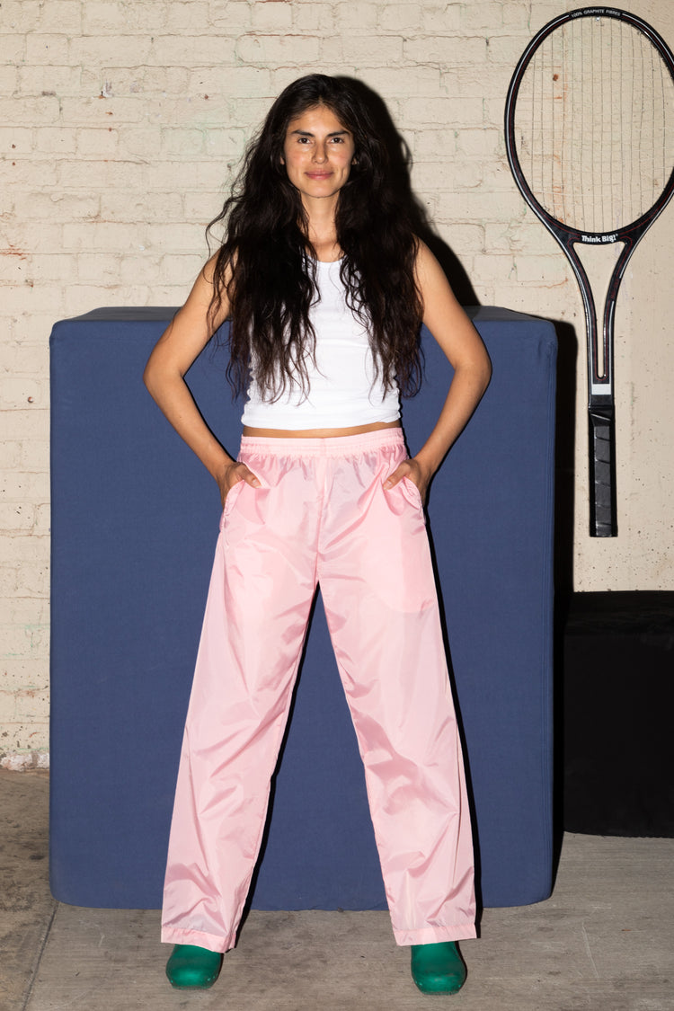 These lightweight nylon pants feature an extra wide, baggy straight leg fit. They feature 2 side pockets, 1 back pocket with velcro closure, and an elastic waistband with drawcord for an adjustable fit. These pants are unlined, making them super compact for traveling and versatile for different climates and weather nee