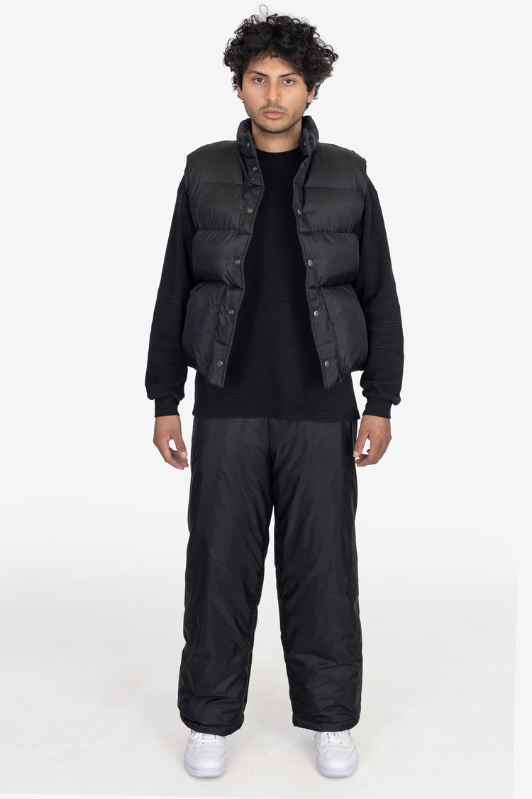 Our unisex Nylon Puffy Pant is composed of a super fluffy polyester filling with a 100% nylon shell, providing insulation for Los Angeles winters. These pants feature an extra wide, baggy straight leg fit. They feature 2 side pockets, 1 back pocket, and an elastic waistband with drawcord for an adjustable fit. Pair wit