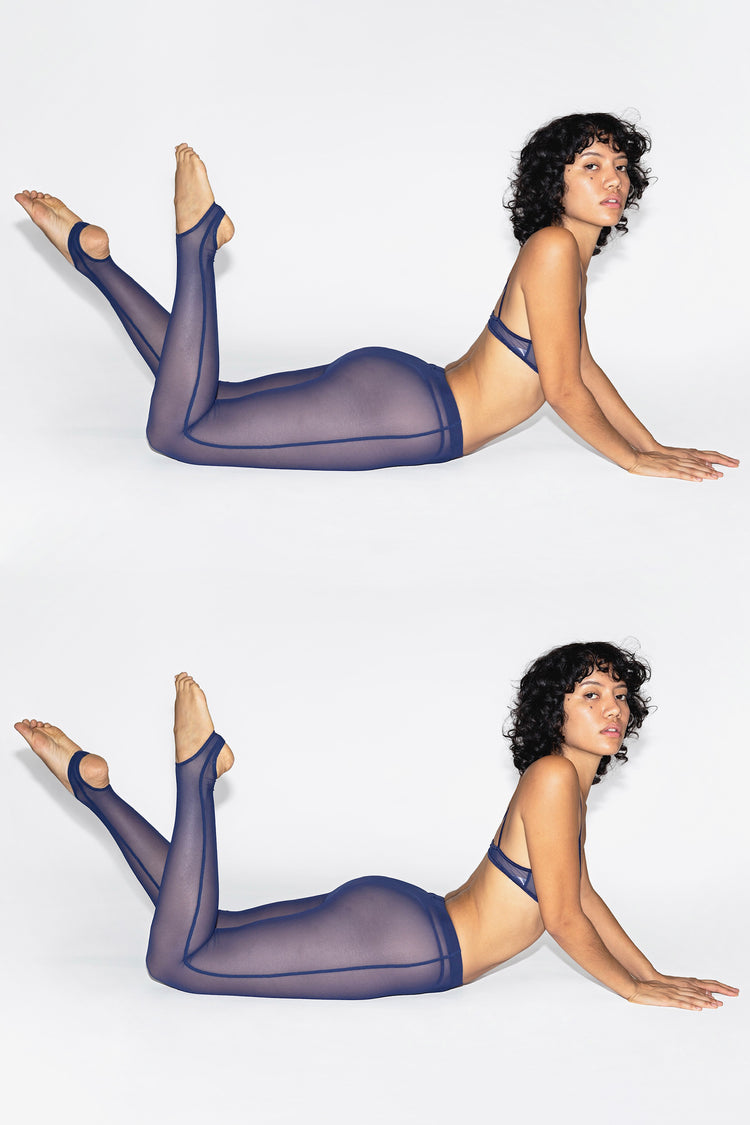 Try subbing out your go-to tights for these durable, no-run leggings for a similar look to classic hosiery. These stirrup leggings are made of our nylon micro mesh to last and make for easy layering. Runs true to size with flexible fit. We recommend sizing down one size if you have a shorter inseam. Made in Los Angeles