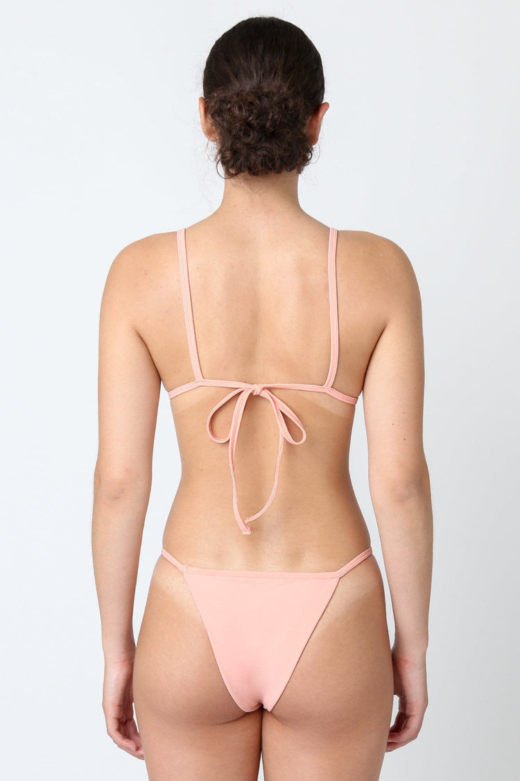 A feminine variation on the classic string bikini top, this style features a clean, sophisticated look with delicate, yet supportive straps. These straps allow for an adjustable fit and are long enough to wrap around and tie in the front for an alternative look. Mix and match these tops with the matching RNT2010 Strapp