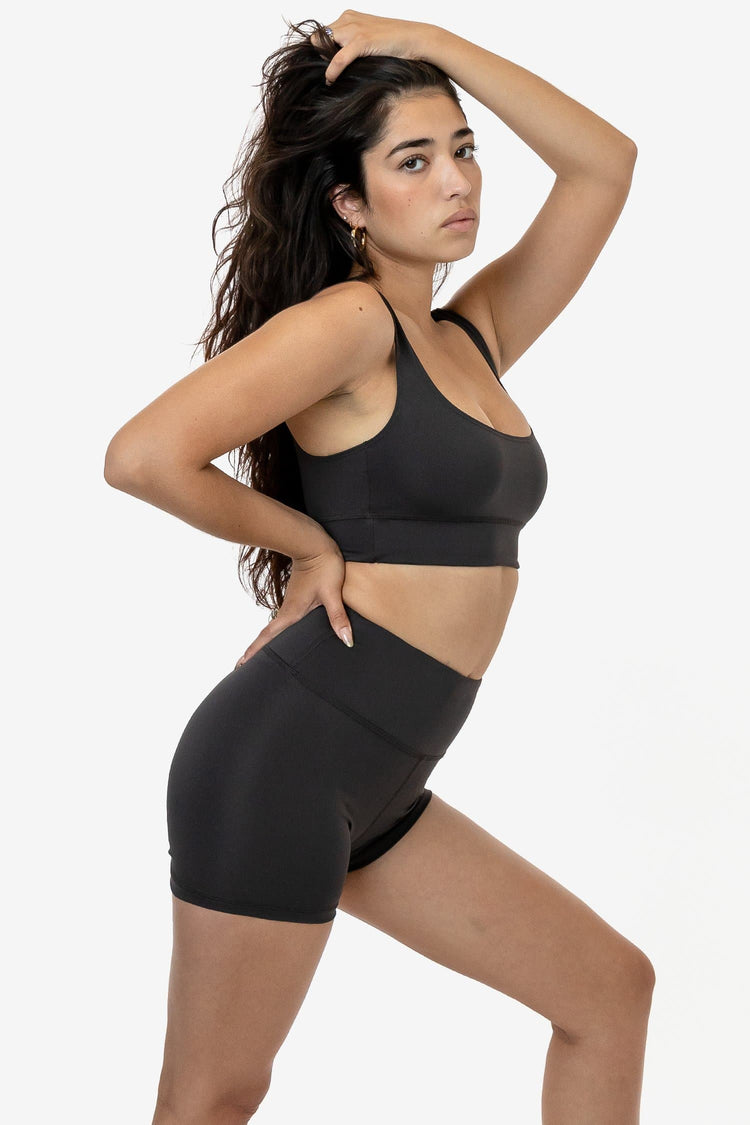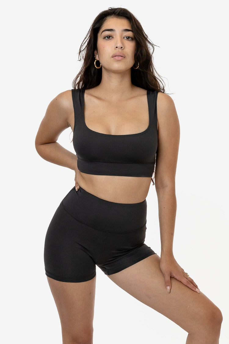 Our Poly Interlock Squareneck Sport Top has all the features you need for active use. This lightweight poly/spandex fabric features a smooth, shiny surface and is ideal for use in hotter weather. This top features a feminine neckline that shows off the collarbones and lifts the chest with a wide bottom band that keeps