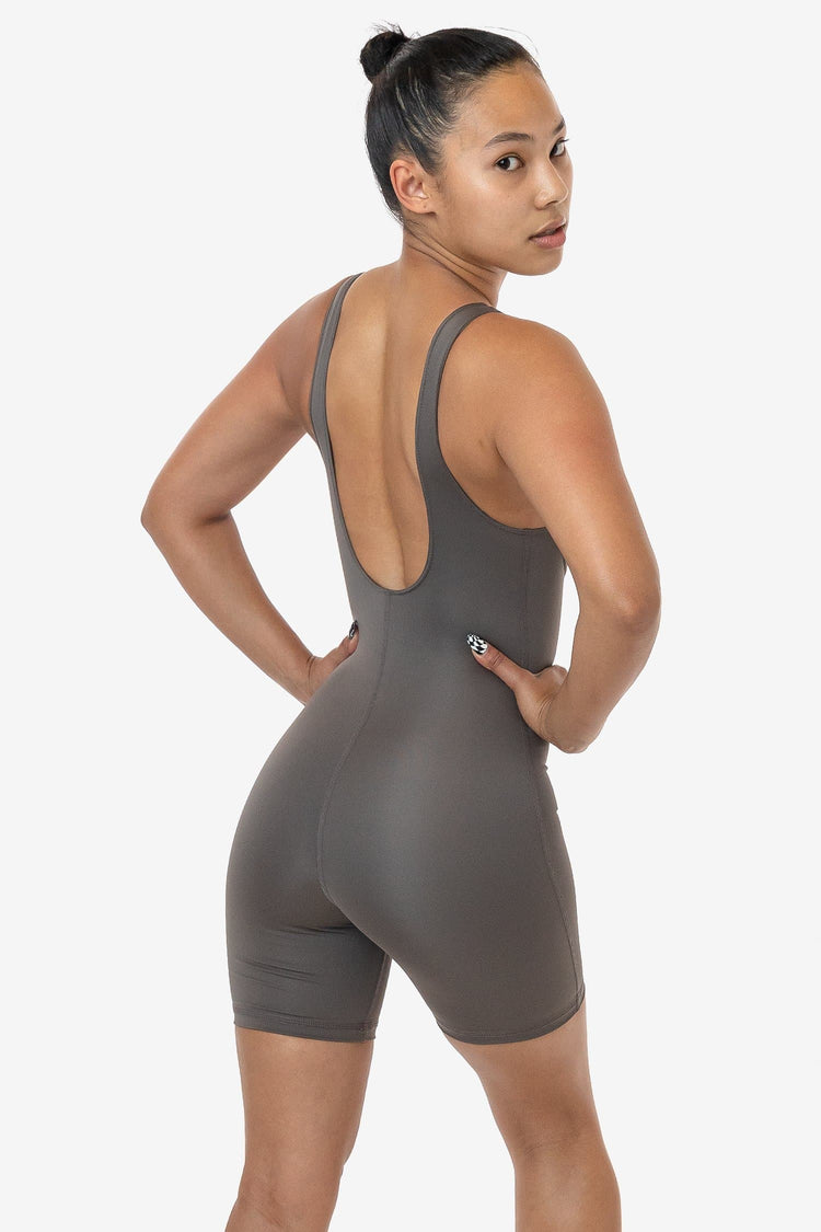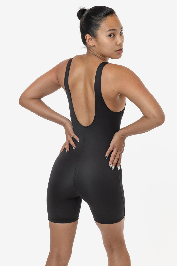 Our Poly Interlock Workout One-Piece is ideal to wear from yoga or the gym and transitions into a stylish biketard for the rest of your day. This style has all the features you need for active use and is made of a lightweight poly/spandex fabric with a smooth, shiny surface and is ideal for use in hotter weather. This
