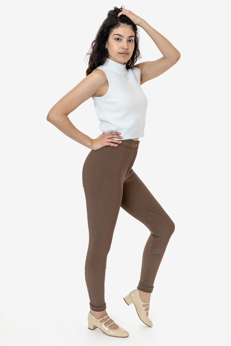 The Original Riding Pant. Still made in Los Angeles. Still Sweatshop free. These pants feature a classic high rise waist and are fitted throughout with patches on the inner knee. Constructed out of a stretchy, durable, ribbed nylon ottoman fabric of traditional sportswear quality. This compressive pant is finished with