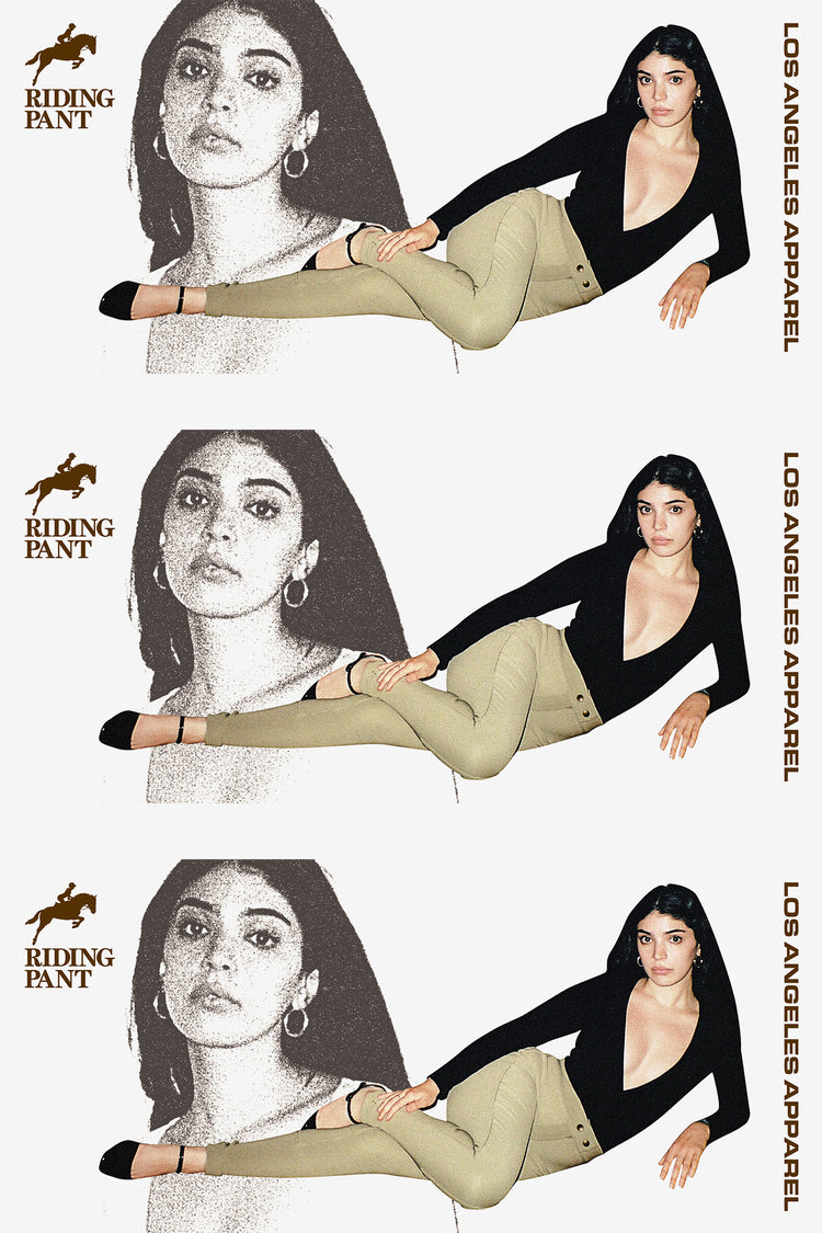 The Original Riding Pant. Still made in Los Angeles. Still Sweatshop free. These pants feature a classic high rise waist and are fitted throughout with patches on the inner knee. Constructed out of a stretchy, durable, ribbed nylon ottoman fabric of traditional sportswear quality. This compressive pant is finished with