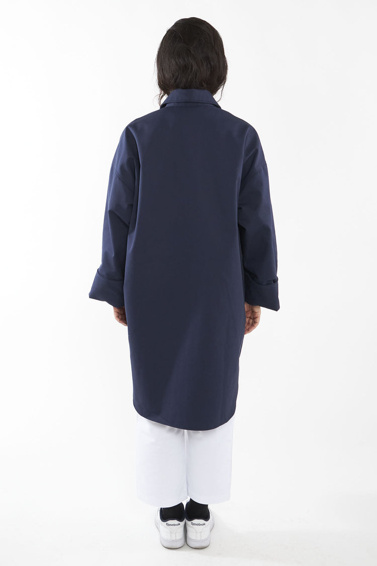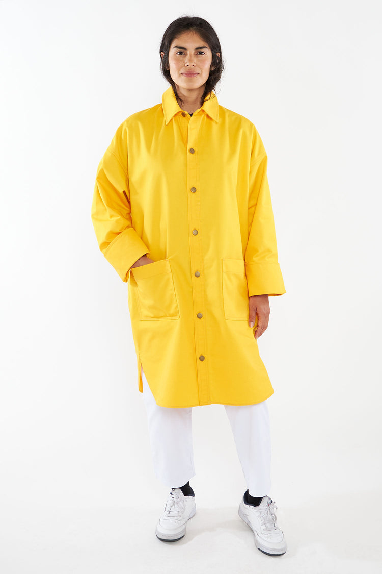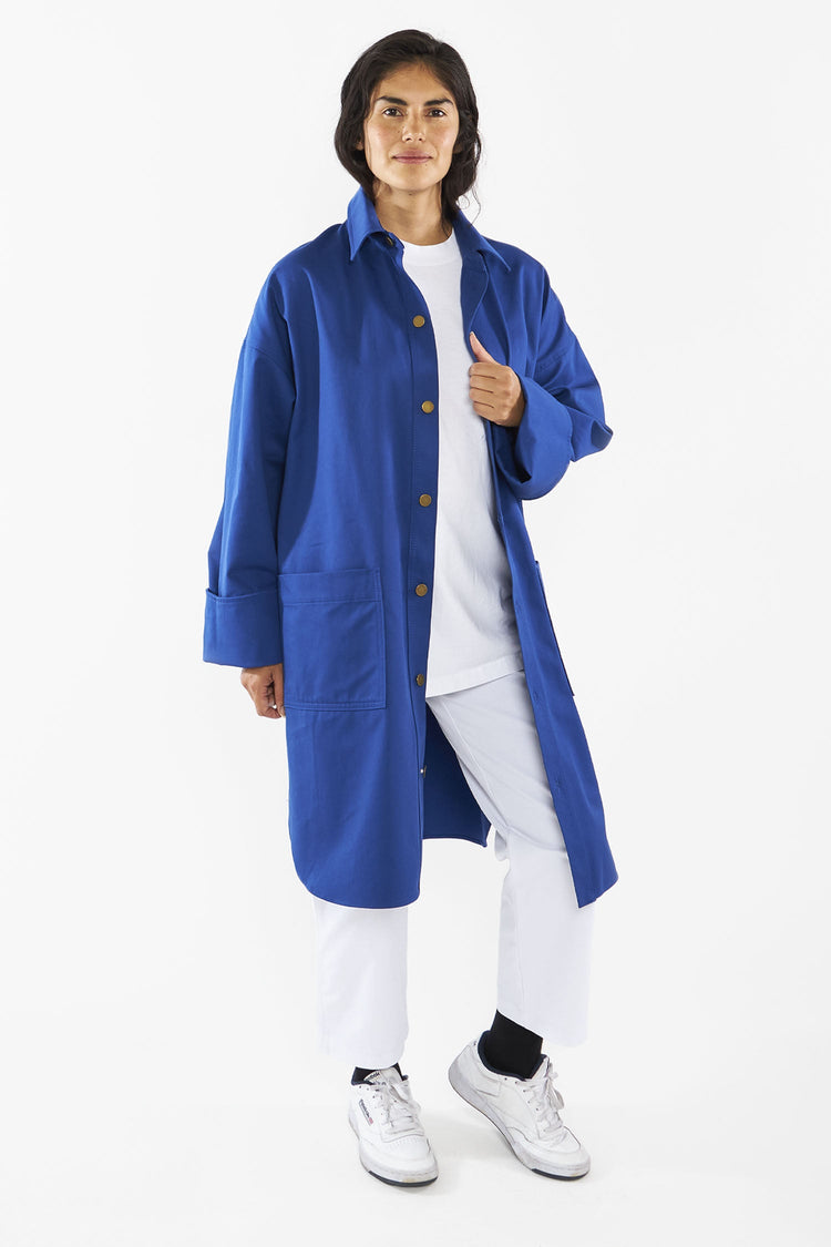 The Twill Mid Length Lab Coat is a workwear inspired coat and is made of a sturdy and structured 7.5 Poly Cotton fabric. Versatile and classic to wear for any occasion. Pair it with the RTWL01 Twill Work Pants for the full look! Made in Los Angeles, Calif. Our experienced sewers earn up to $25 an hour and no less than