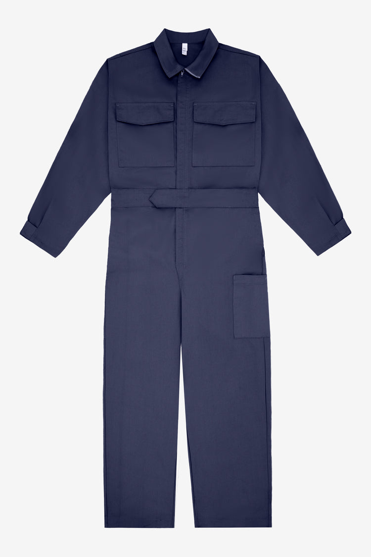 Our workwear-inspired coverall is a testament to functionality, boasting six spacious pockets strategically placed for accessibility and convenience. With a full-length zipper extending to the collar for a mock neck effect, front adjustable Velcro at the waist , and elastic on the back for ease of movement, it's engine