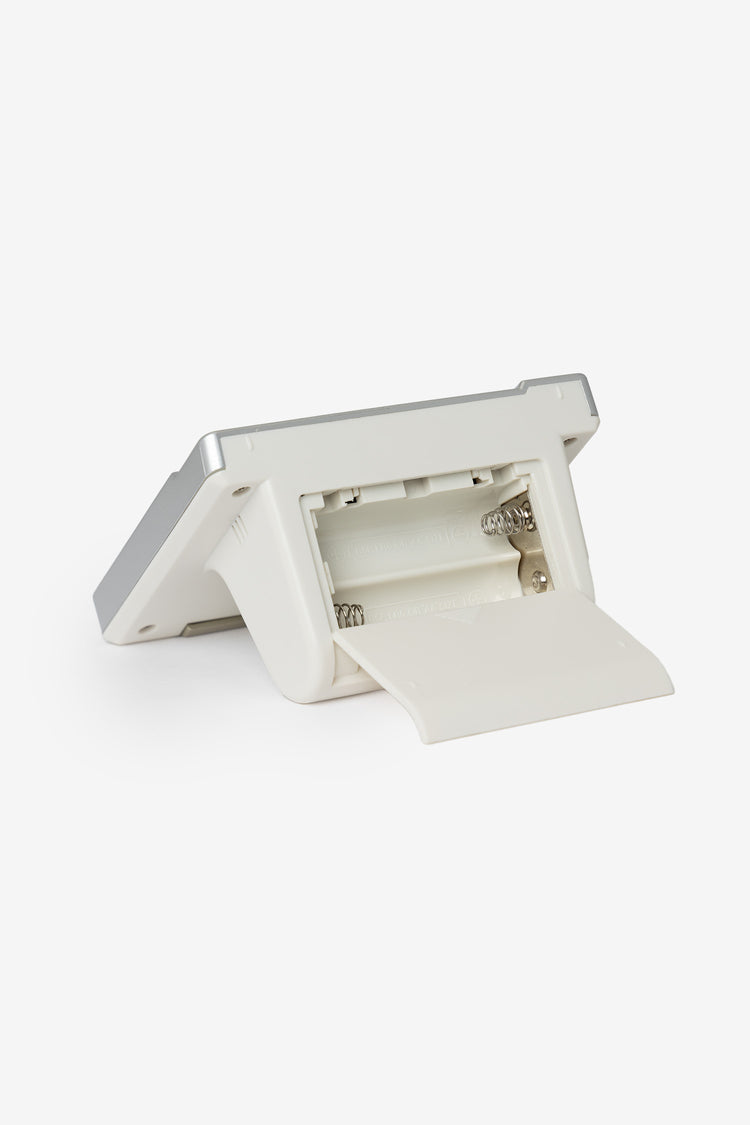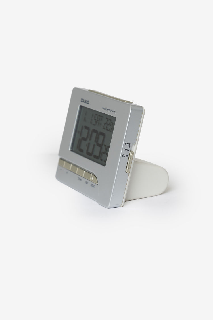 The Casio silver LED digital alarm clock features an LCD thermometer display, offering both accurate timekeeping and temperature monitoring. Its sleek, modern design complements any space, while the easy-to-read display and reliable alarm function make it a practical addition to your home or office. • Size of case: 73×