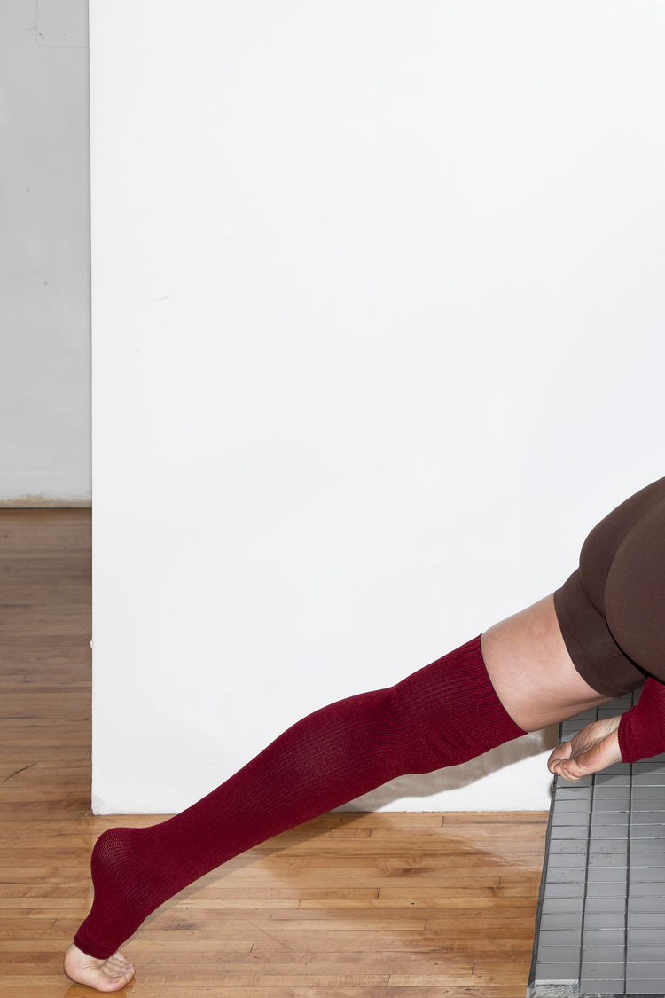The thigh high leg warmers can be worn pulled straight or scrunched at the ankle. These leg warmers can be worn layered over tights or on their own and can be pulled down to cover the heel if desired. SIMILAR STYLE ALERT: If you love our thigh high leg warmers, consider the acrylic leg warmer as an addition or alternat