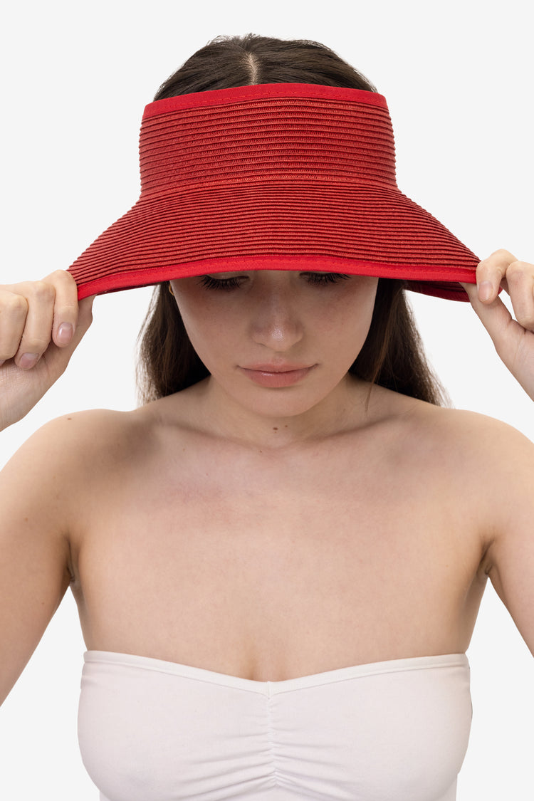 The Laurel Visor has an extra-wide brim, adjustable velcro fit, and can be rolled up tight and packed away without getting crushed. The tightly woven fibers offer UPF 50 protection from both UVA and UVB rays. *A UPF rating is an industry standard used to rate sun-protective clothing. We recommend customers continue to