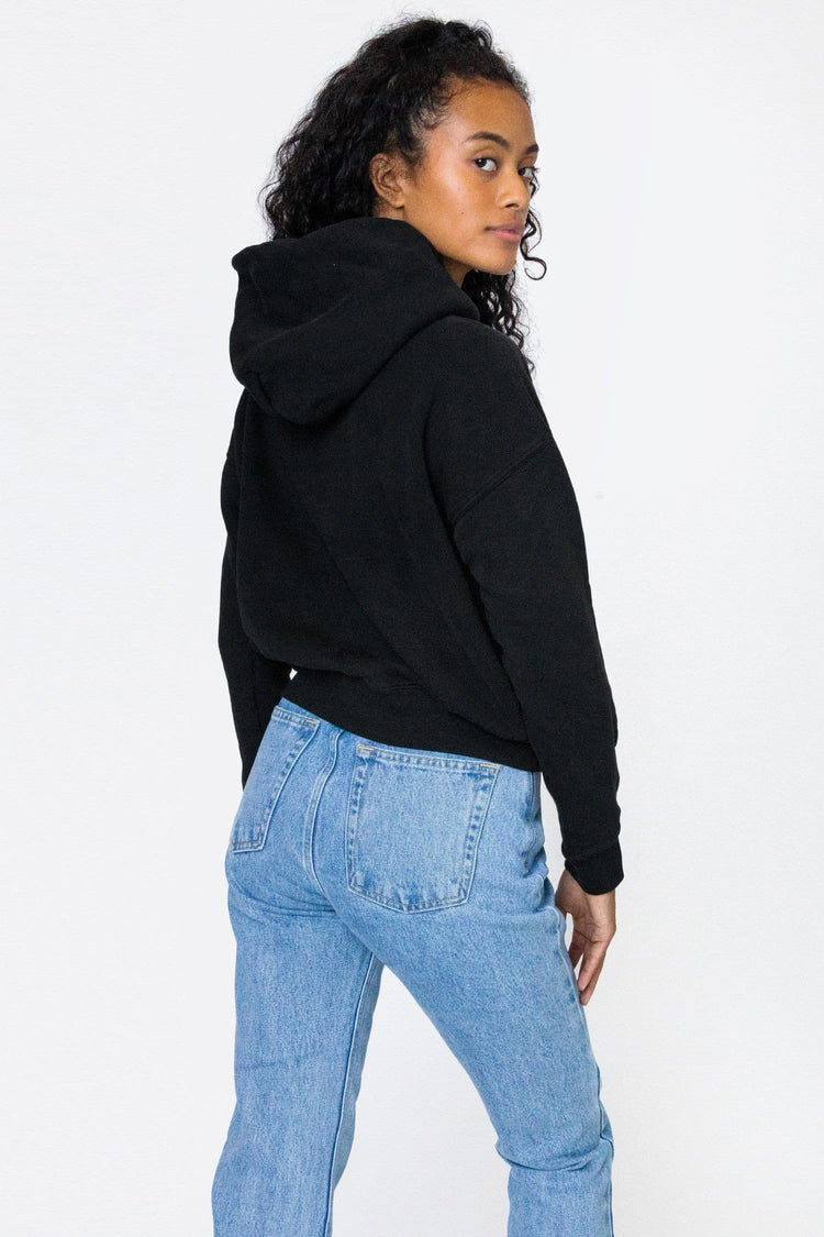 A boxy, cropped hoodie made of a softer, puffy fleece compared our 14 oz. Heavy Fleece. This fleece is made of a combed cotton and has a bouncy, fluffy feel. Features 2 side pockets on the side seam and an oversized fit, and is an optimal winter weight. Try different sizes for different looks. This fleece is very heavy