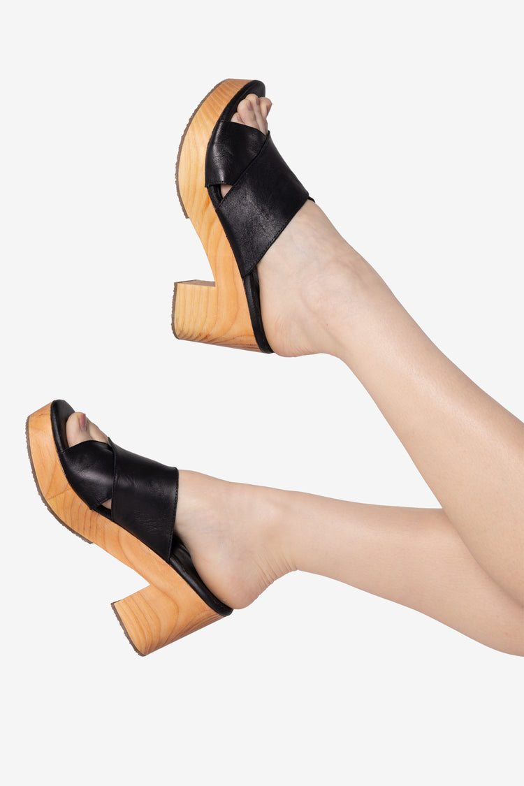 WOODSNDL03 – Crossover Mule Wooden Heel Sandal
